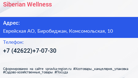 Siberian Wellness по адресу Еврейская АО, Биробиджан, Комсомольская, 10 в дальнейшем Организация, размещена в следующих категориях: