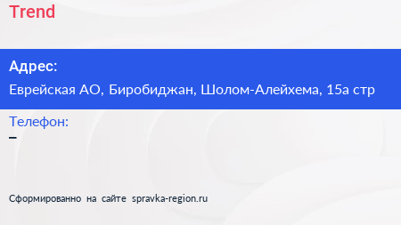 Trend по адресу Еврейская АО, Биробиджан, Шолом-Алейхема, 15а стр в дальнейшем Организация, размещена в следующих категориях:
