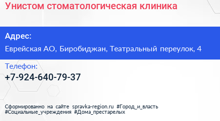 Унистом, стоматологическая клиника по адресу Еврейская АО, Биробиджан, Театральный переулок, 4 в дальнейшем Организация, размещена в следующих категориях: