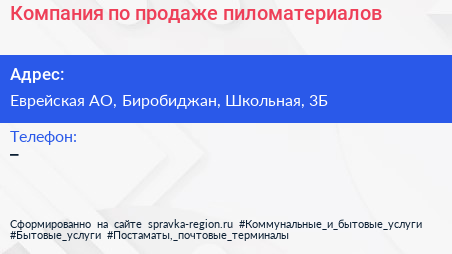 Компания по продаже пиломатериалов по адресу Еврейская АО, Биробиджан, Школьная, 3Б в дальнейшем Организация, размещена в следующих категориях: