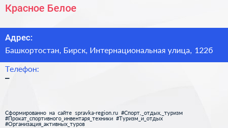 Красное & Белое по адресу Башкортостан, Бирск, Интернациональная улица, 122б в дальнейшем Организация, размещена в следующих категориях: