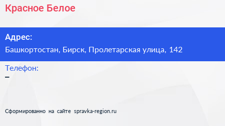 Красное & Белое по адресу Башкортостан, Бирск, Пролетарская улица, 142 в дальнейшем Организация, размещена в следующих категориях: