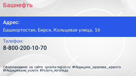 Башнефть по адресу Башкортостан, Бирск, Кольцевая улица, 16 в дальнейшем Организация, размещена в следующих категориях: