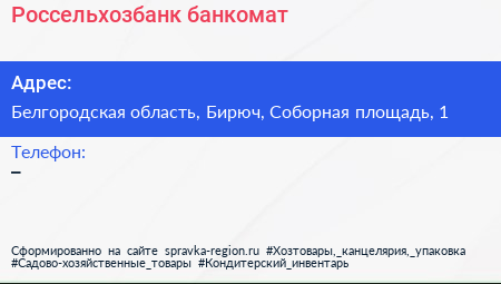 Россельхозбанк, банкомат по адресу Белгородская область, Бирюч, Соборная площадь, 1 в дальнейшем Организация, размещена в следующих категориях:
