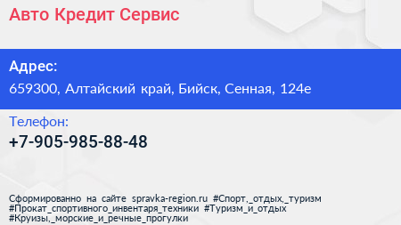 Авто-Кредит-Сервис по адресу 659300, Алтайский край, Бийск, Сенная, 124е в дальнейшем Организация, размещена в следующих категориях: