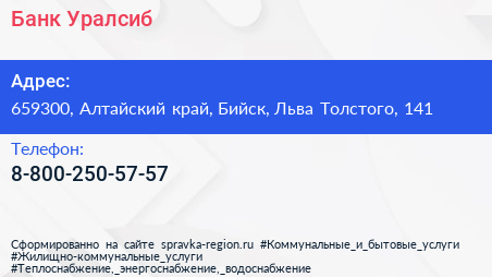 Банк Уралсиб по адресу 659300, Алтайский край, Бийск, Льва Толстого, 141 в дальнейшем Организация, размещена в следующих категориях: