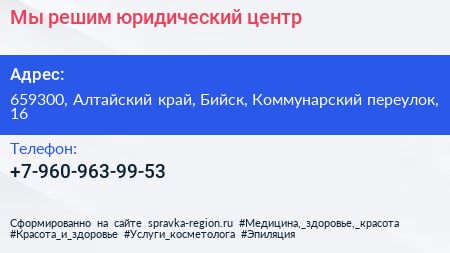 Мы решим!, юридический центр по адресу 659300, Алтайский край, Бийск, Коммунарский переулок, 16 в дальнейшем Организация, размещена в следующих категориях: