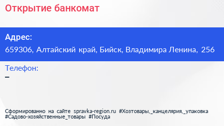 Открытие, банкомат по адресу 659306, Алтайский край, Бийск, Владимира Ленина, 256 в дальнейшем Организация, размещена в следующих категориях: