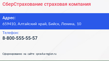 СберСтрахование, страховая компания по адресу 659410, Алтайский край, Бийск, Ленина, 10 в дальнейшем Организация, размещена в следующих категориях: