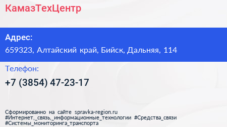 КамазТехЦентр по адресу 659323, Алтайский край, Бийск, Дальняя, 114 в дальнейшем Организация, размещена в следующих категориях: