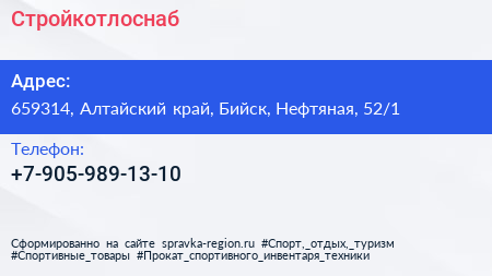 Стройкотлоснаб по адресу 659314, Алтайский край, Бийск, Нефтяная, 52/1 в дальнейшем Организация, размещена в следующих категориях: