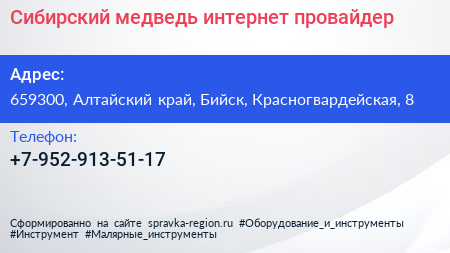 Сибирский медведь, интернет-провайдер по адресу 659300, Алтайский край, Бийск, Красногвардейская, 8 в дальнейшем Организация, размещена в следующих категориях: