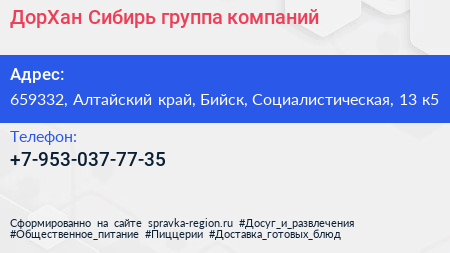 ДорХан-Сибирь, группа компаний по адресу 659332, Алтайский край, Бийск, Социалистическая, 13 к5 в дальнейшем Организация, размещена в следующих категориях: