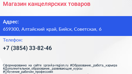 Магазин канцелярских товаров по адресу 659300, Алтайский край, Бийск, Советская, 6 в дальнейшем Организация, размещена в следующих категориях: