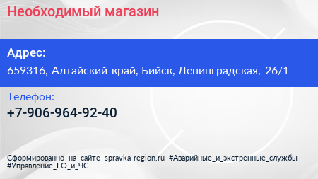Необходимый, магазин по адресу 659316, Алтайский край, Бийск, Ленинградская, 26/1 в дальнейшем Организация, размещена в следующих категориях: