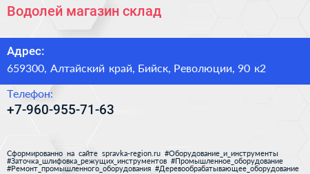 Водолей, магазин-склад по адресу 659300, Алтайский край, Бийск, Революции, 90 к2 в дальнейшем Организация, размещена в следующих категориях: