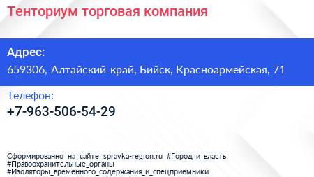 Тенториум, торговая компания по адресу 659306, Алтайский край, Бийск, Красноармейская, 71 в дальнейшем Организация, размещена в следующих категориях: