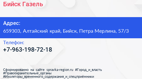 Адрес: Алтайский край, Бийск, Петра Мерлина, 63 к2