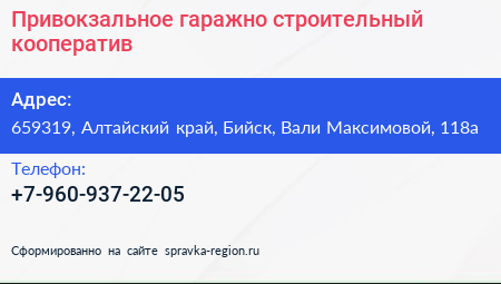 Привокзальное, гаражно-строительный кооператив по адресу 659319, Алтайский край, Бийск, Вали Максимовой, 118а в дальнейшем Организация, размещена в следующих категориях: