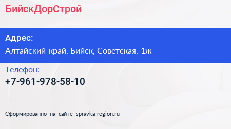 БийскДорСтрой по адресу Алтайский край, Бийск, Советская, 1ж в дальнейшем Организация, размещена в следующих категориях: