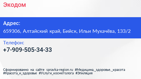 Экодом по адресу 659306, Алтайский край, Бийск, Ильи Мухачёва, 133/2 в дальнейшем Организация, размещена в следующих категориях: