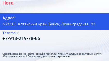 Нота по адресу 659315, Алтайский край, Бийск, Ленинградская, 93 в дальнейшем Организация, размещена в следующих категориях: