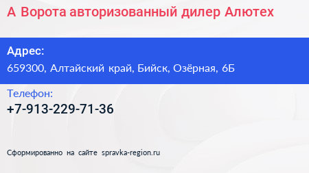 А-Ворота, авторизованный дилер Алютех по адресу 659300, Алтайский край, Бийск, Озёрная, 6Б в дальнейшем Организация, размещена в следующих категориях: