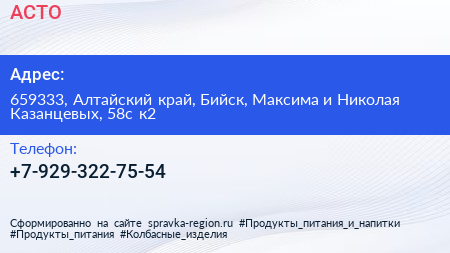 АСТО по адресу 659333, Алтайский край, Бийск, Максима и Николая Казанцевых, 58с к2 в дальнейшем Организация, размещена в следующих категориях: