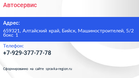 Адрес: Алтайский край, Бийск, Машиностроителей, 28/1 бокс 5
