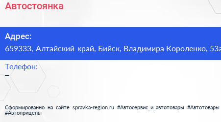 Автостоянка по адресу 659333, Алтайский край, Бийск, Владимира Короленко, 53а в дальнейшем Организация, размещена в следующих категориях: