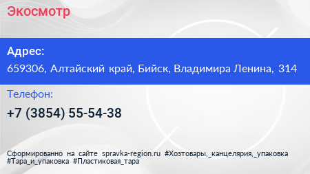 Экосмотр по адресу 659306, Алтайский край, Бийск, Владимира Ленина, 314 в дальнейшем Организация, размещена в следующих категориях: