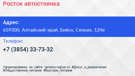 Росток, автостоянка по адресу 659300, Алтайский край, Бийск, Сенная, 124е в дальнейшем Организация, размещена в следующих категориях: