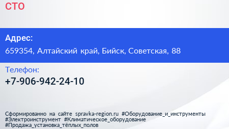 СТО по адресу 659354, Алтайский край, Бийск, Советская, 88 в дальнейшем Организация, размещена в следующих категориях: