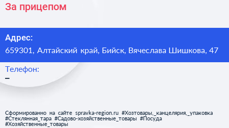 За прицепом по адресу 659301, Алтайский край, Бийск, Вячеслава Шишкова, 47 в дальнейшем Организация, размещена в следующих категориях: