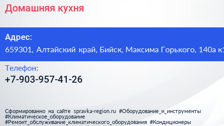 Домашняя кухня по адресу 659301, Алтайский край, Бийск, Максима Горького, 140а к1 в дальнейшем Организация, размещена в следующих категориях: