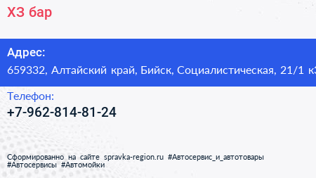 ХЗ, бар по адресу 659332, Алтайский край, Бийск, Социалистическая, 21/1 к3 в дальнейшем Организация, размещена в следующих категориях: