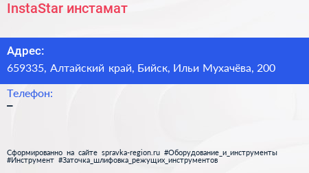 InstaStar, инстамат по адресу 659335, Алтайский край, Бийск, Ильи Мухачёва, 200 в дальнейшем Организация, размещена в следующих категориях: