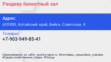 Рандеву, банкетный зал по адресу 659300, Алтайский край, Бийск, Советская, 4 в дальнейшем Организация, размещена в следующих категориях: