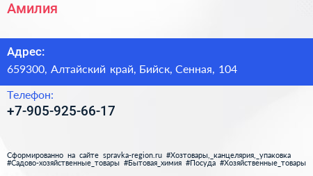 Амилия по адресу 659300, Алтайский край, Бийск, Сенная, 104 в дальнейшем Организация, размещена в следующих категориях: