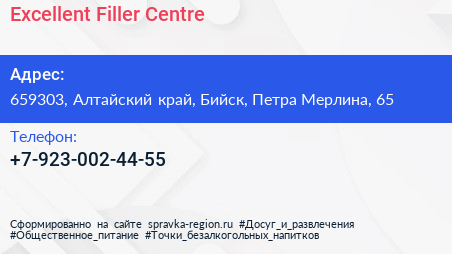 Excellent Filler Centre по адресу 659303, Алтайский край, Бийск, Петра Мерлина, 65 в дальнейшем Организация, размещена в следующих категориях:
