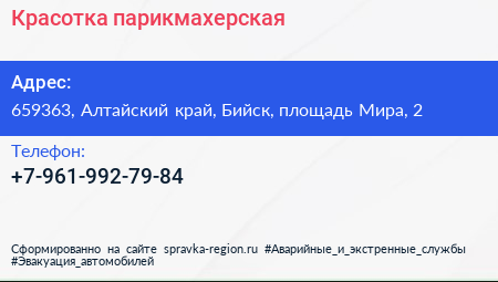 Красотка, парикмахерская по адресу 659363, Алтайский край, Бийск, площадь Мира, 2 в дальнейшем Организация, размещена в следующих категориях: