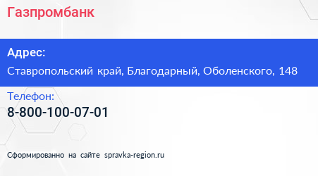 Газпромбанк по адресу Ставропольский край, Благодарный, Оболенского, 148 в дальнейшем Организация, размещена в следующих категориях: