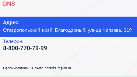 DNS по адресу Ставропольский край, Благодарный, улица Чапаева, 319 в дальнейшем Организация, размещена в следующих категориях: