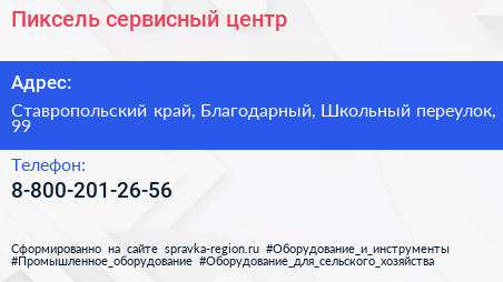 Пиксель, сервисный центр по адресу Ставропольский край, Благодарный, Школьный переулок, 99 в дальнейшем Организация, размещена в следующих категориях: