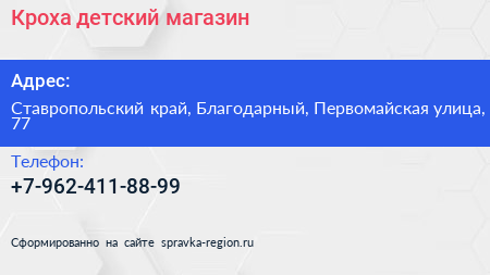 Кроха, детский магазин по адресу Ставропольский край, Благодарный, Первомайская улица, 77 в дальнейшем Организация, размещена в следующих категориях: