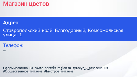 Магазин цветов по адресу Ставропольский край, Благодарный, Комсомольская улица, 1 в дальнейшем Организация, размещена в следующих категориях: