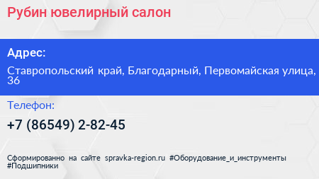 Рубин, ювелирный салон по адресу Ставропольский край, Благодарный, Первомайская улица, 36 в дальнейшем Организация, размещена в следующих категориях: