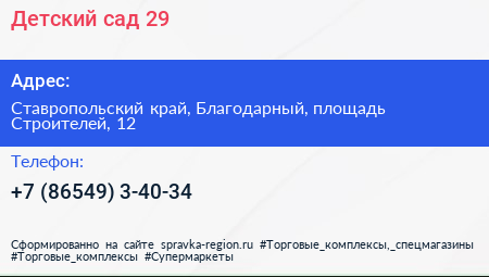 Детский сад №29 по адресу Ставропольский край, Благодарный, площадь Строителей, 12 в дальнейшем Организация, размещена в следующих категориях: