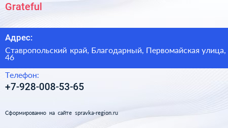 Grateful по адресу Ставропольский край, Благодарный, Первомайская улица, 46 в дальнейшем Организация, размещена в следующих категориях: