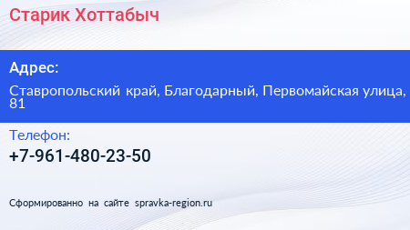 Старик Хоттабыч по адресу Ставропольский край, Благодарный, Первомайская улица, 81 в дальнейшем Организация, размещена в следующих категориях: